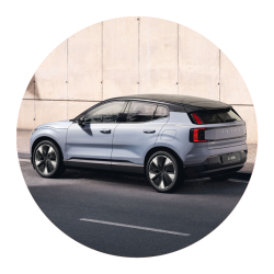 Volvo EX30 - privatleasa fr. 3 450 kr/mån. Lägg till dragkrok alt. 19” 5-Spoke Glossy B DC-fälgar + mörkt tonade rutor (5 st) för endast 150 kr/mån.